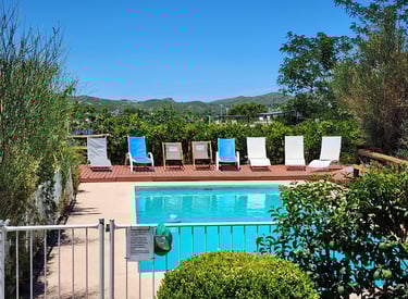Relájate en nuestra piscina, relajate en nuestro deck, y disfruta de la vista 360 a nuestras sierras.